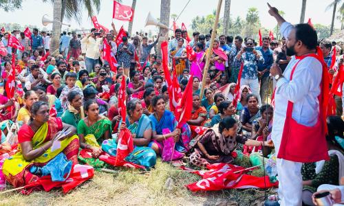 ఆకాంక్ష న్యూస్ - ఆంధ్ర ప్రదేశ్ / పిఠాపురం : పిఠాపురం నియోజకవర్గం యు.కొత్తపల్లి మండలం కొమరగిరి లేఔట్ 72 ఎకరాల భూమి ప్రభుత్వ భూమిని కొంత మంది కబ్జా చేస్తున్నారని ఇది ఇళ్ల స్థలాల కొరకు కొన్న భూమి కాబట్టి ఇళ్ల స్థలాలకే కేటాయించాలని సిపిఐ రాష్ట్ర కార్యదర్శి కె.రామకృష్ణ డిమాండ్ చేశారు.శుక్రవారం సిపిఐ ఆంధ్రప్రదేశ్ వ్యవసాయ కార్మిక సంఘం జిల్లా కమిటీ ఆధ్వర్యంలో వేలాది మంది గ్రామీణ పేదలకు కబ్జాకు గురవుతున్న 72 ఎకరాల భూమిని స్వాధీనం చేసుకుని భూ పోరాటం నిర్వహించారు. అనంతరం జరిగిన సభకు సిపిఐ రాష్ట్ర కార్యవర్గ సభ్యు డు తాటిపాక మధు అధ్యక్షత వహించగా ముఖ్య అతిథిగా పాల్గొన్న కె.రామకృష్ణ మాట్లాడుతూ ఆనాటి వై.యస్.జగన్ ప్రభుత్వం ఇళ్ల స్థలాల కొరకు కొమరగిరి పేజ్ టు 72 ఎకరాలు రైతులు వద్ద నుండి 32 కోట్లు వెచ్చించి భూమి కొందని, ఎన్నికల అనంతరం ఈ భూమిపై భూ కబ్జాదారుల కన్ను పడిందని ఆయన అన్నారు. అందులో భాగంగా 42 ఎకరాల భూమిని అక్రమంగా సాగు చేస్తూ అనుభవిస్తున్నారని, దీనిపై రెవెన్యూ అధికారులు మీనమేషాలు లెక్కిస్తున్నారని ఆయన విమర్శించారు. అయితే కొంత మంది విఆర్వోలు భూకబ్జాదారులకు సాయం చేస్తున్నారని ఆయన విమర్శించారు. గత నాలుగు నెలలుగా సిపిఐ రాష్ట్ర వ్యాప్తంగా పేద ప్రజలకు గ్రామీణ ప్రాంతాలలో పేదలకు మూడు సెంట్లు పట్టణాల్లో రెండు సెంట్లు ఇవ్వాలని దశల వారి పోరాటాలు నిర్వహించిందని, కొన్ని భూములలో భూపారాటం నిర్వహించిందని ఆయన పేర్కొన్నారు. ఈ పేదల భూమిపై ఇప్పటికే ముఖ్యమంత్రిని, రెవెన్యూ శాఖ మంత్రిని కలుస్తామని, ఈ కొమరగిరి భూ విషయంపై త్వరలో రెవెన్యూ శాఖ మంత్రి కలుస్తామని, జనసేన అధినేత, పిఠాపురం నియోజకవర్గ ఎమ్మెల్యే పవన్ కళ్యాణ్ కి లేఖ రాస్తానని ఆయన తెలిపారు. అప్పటికి ప్రభుత్వం ఈ పేద ప్రజలకు ఈ భూమిలో స్థలాలు ఇవ్వకపోతే మరొకసారి ఇక్కడే మేమే వచ్చి స్థలాలు పంపకాలు చేస్తామని ఆయన తెలిపారు. ఈ కార్యక్రమంలో సిపిఐ జిల్లా సహాయ కార్యదర్శి తోకల ప్రసాద్, జిల్లా కార్యవర్గ సభ్యులు పి.సత్యనారాయణ, కేశవరపు అప్పలరాజు, ఆంధ్రప్రదేశ్ మహిళా సమాఖ్య జిల్లా కన్వీనర్ ఏ.భవాని, సమాచార హక్కుల వేదిక నాయకుడు బళ్ళ సురేష్, వ్యవసాయ కార్మిక సంఘం జిల్లా సహాయ కార్యదర్శి నక్క శ్రీనివాసరావు, రైతు సంఘం జిల్లా కన్వీనర్ మేడిశెట్టి వీరబాబు, తూర్పుగోదావరి జిల్లా ఏఐఎస్ఎఫ్ జిల్లా ప్రధాన కార్యదర్శి చింతలపూడి సునీల్, ఏఐవైఎఫ్ తూర్పుగోదావరి జిల్లా ప్రధాన కార్యదర్శి పి.త్రిమూర్తులు, ఏఐవైఎఫ్ బాబి, వ్యవసాయ కార్మిక సంఘం నాయకులు కేతా గోవిందు, వాసంశెట్టి గురవయ్య, మేడిశెట్టి శీను, కొమరగిరి వార్డ్ మెంబర్స్ కొప్పిశెట్టి త్రిమూర్తులు, శాఖ ఝాన్సీ, రాజకీయ పార్టీలకతీతంగా సర్పంచులు, ఎంపీటీసీలు పాల్