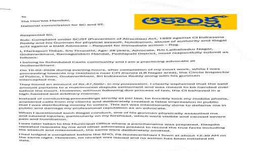 ఆకాంక్ష న్యూస్ - పెద్దపల్లి జిల్లా / : పెద్దపల్లి జిల్లా గోదావరిఖని పట్టణంలో I టౌన్ సీఐ ఇంద్రసేనారెడ్డిపై వరుస ఫిర్యాదులు వస్తున్నప్పటికీ, ఉన్నతాధికారులు చర్యలు తీసుకోవడంలో విఫలమవుతున్నారని తీవ్ర విమర్శలు వెల్లువెత్తుతున్నాయి. గతంలో పలుమార్లు వినతి పత్రాలు, ఫిర్యాదులు అందినా అవి కేవలం కాగితాలకే పరిమితమైపోయాయని స్థానిక న్యాయవాదులు, ప్రజా సంఘాలు ఆరోపిస్తున్నాయి. ఒక ప్రభుత్వ అధికారి తప్పు చేస్తే సాధారణంగా విచారణ జరిపి చర్యలు తీసుకునే విధానం ఉండగా, గోదావరిఖని I టౌన్ సీఐ ఇంద్రసేనారెడ్డి విషయంలో మాత్రం విరుద్ధంగా వ్యవహరిస్తున్నారన్న విమర్శలు వినిపిస్తున్నాయి.ఈ పరిణామాల మధ్య తాజాగా దళిత న్యాయవాది మార్కపూరి తిలక్పై జరిగిన దాడి ఘటన మరింత సంచలనం రేపింది. ఫిబ్రవరి 10వ తేదీ సాయంత్రం కోర్టు పనులు ముగించుకుని ఇంటికి వెళ్తున్న సమయంలో సీఐ ఇంద్రసేనారెడ్డి తన గన్మెన్లతో కలిసి అడ్డగించి దురుసుగా ప్రవర్తించారని బాధితుడు ఆరోపించారు. తన వద్ద ఉన్న రూ.47,500/- కోర్టు వ్యవహారానికి సంబంధించినదని చెప్పినా వినిపించకుండా తన మొబైల్ ఫోన్ను స్వాధీనం చేసుకుని, క్లయింట్లతో మాట్లాడి తప్పుడు ప్రచారం చేశారని పేర్కొన్నారు. తాను ప్రశ్నించగా సీఐ అనుచరుల్లో ఒకరు తనపై దాడి చేసి నుదిటిపై గాయాలు కలిగించారని తెలిపారు.అనంతరం మున్సిపల్ కార్యాలయానికి తీసుకెళ్లి పంచనామా నిర్వహించినప్పటికీ దాడి వివరాలను నమోదు చేయలేదని, అక్కడ ఉన్న న్యాయవాదులు కోరినా పట్టించు కోలేదని బాధితుడు ఆరోపించారు. అదే రోజు రాత్రి పోలీస్ స్టేషన్లో ఫిర్యాదు చేసినప్పటికీ రసీదు ఇవ్వలేదని, ఇప్పటి వరకు ఎలాంటి చర్యలు తీసుకోలేదని తెలిపారు. ఈ వ్యవహారం తనపై అధికార దుర్వినియోగం, అవమానం, బెదిరింపు, అలాగే ఎస్సీ, ఎస్టీ చట్టం కింద అట్రాసిటీగా పరిగణించాల్సిన ఘటనగా పేర్కొన్నారు.ఈ ఘటనపై బాధిత న్యాయవాది మార్కపూరి తిలక్ జాతీయ ఎస్సీ, ఎస్టీ కమిషన్ ను ఆశ్రయిస్తూ అధికారికంగా ఫిర్యాదు చేశారు. సీఐ ఇంద్రసేనారెడ్డి, అతని గన్మెన్లపై ఎస్సీ,ఎస్టీ చట్టం, 1989 కింద కేసు నమోదు చేసి వెంటనే సస్పెండ్ చేయాలని, నిష్పక్షపాత విచారణ జరిపి తనకు రక్షణ కల్పించాలని విజ్ఞప్తి చేశారు. భారత రాజ్యాంగంలోని ఆర్టికల్ 14, 19, 21 ప్రకారం తన మౌలిక హక్కులు ఉల్లంఘించబడ్డాయని కూడా ఆయన పేర్కొన్నారు.ఇక సీఐ ఇంద్రసేనారెడ్డిని రక్షించేందుకు కొంతమంది స్థానిక ప్రజాప్రతినిధులు, కార్పొరేటర్లు, రాజకీయ నాయకులు, అలాగే కొందరు ఉన్నతాధికారులు సహకరిస్తున్నారనే ఆరోపణలు కూడా వినిపిస్తున్నాయి.ఒక పోలీస్ అధికారిపై ఇంత తీవ్ర ఆరోపణలు వచ్చినప్పటికీ చర్యలు తీసుకోక పోవడం న్యాయ వ్యవస్థకు సవాలుగా మారిందని న్యాయవాదుల వర్గాలు పేర్కొంటున్న